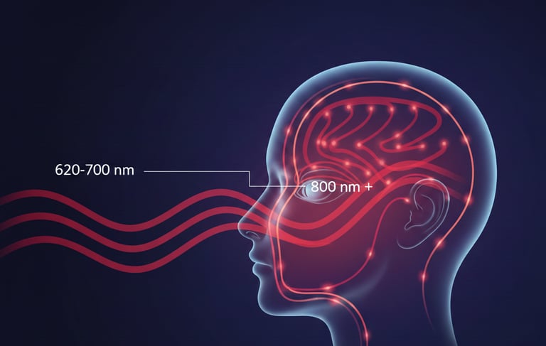 La lumière rouge correspond à une partie visible du spectre lumineux, généralement comprise entre 620 et 700 nanomètres. Elle peut être associée à des longueurs d’onde dites proche infrarouge, légèrement au-delà du visible. 800 nanomètres et plus.